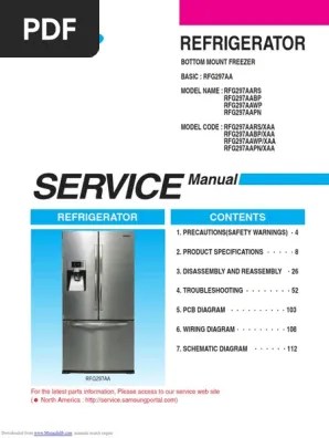 Rfg297aars refrigerator pdf manual download. View and download samsung rfg297aars service manual online. User manual (user manual) (ver.1.0) (spanish) (42 pages) refrigerator samsung rfg297aa specifications. User manual (user manual) (ver.0.6) (korean) (42 pages) refrigerator samsung rfg297aabp/xaa manual de usuario. French door refrigerator with premium external water and ice dispenser (2 pages) related products for samsung …